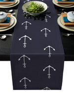 Découvrez ce chemin de table bleu marine aux imprimées ancres de marine qui rendra totalement jaloux vos invités par sa qualité et sa beauté incroyable.