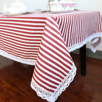 Choisissez cette superbe nappe rayée rouge et blanche au look rétro, et sa dentelle recouvrant les bords de la nappe émerveillera vos invités.